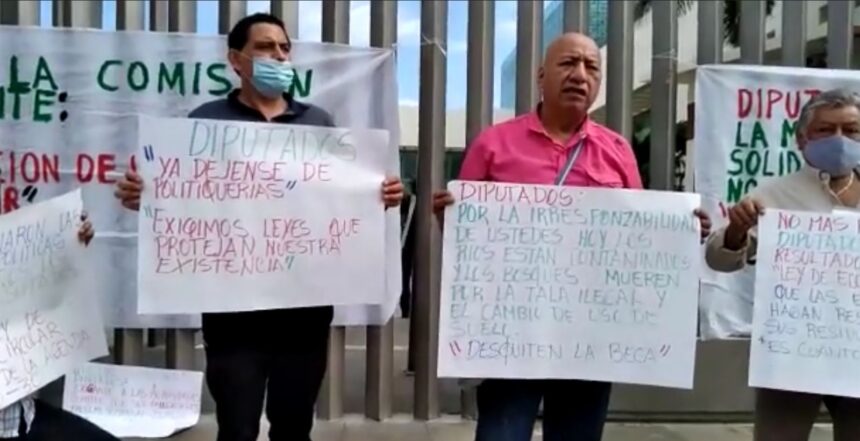 Al mando de Nazario García, los manifestantes colocaron mantas y pancartas, denunciando una serie de irregularidades en el medio ambiente, por lo piden a los diputados y diputadas se ponga especial atención en el tema del medio ambiente.
