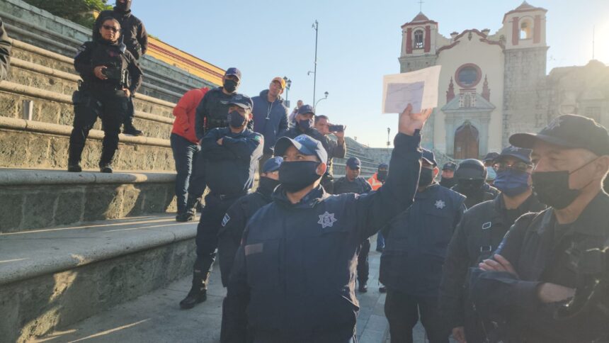 Oaxaca, México.- En medio de la protesta que elementos de Policía Municipal realizaban esta mañana en la Plaza de la Danza, salieron algunas verdades en voz de los elementos.