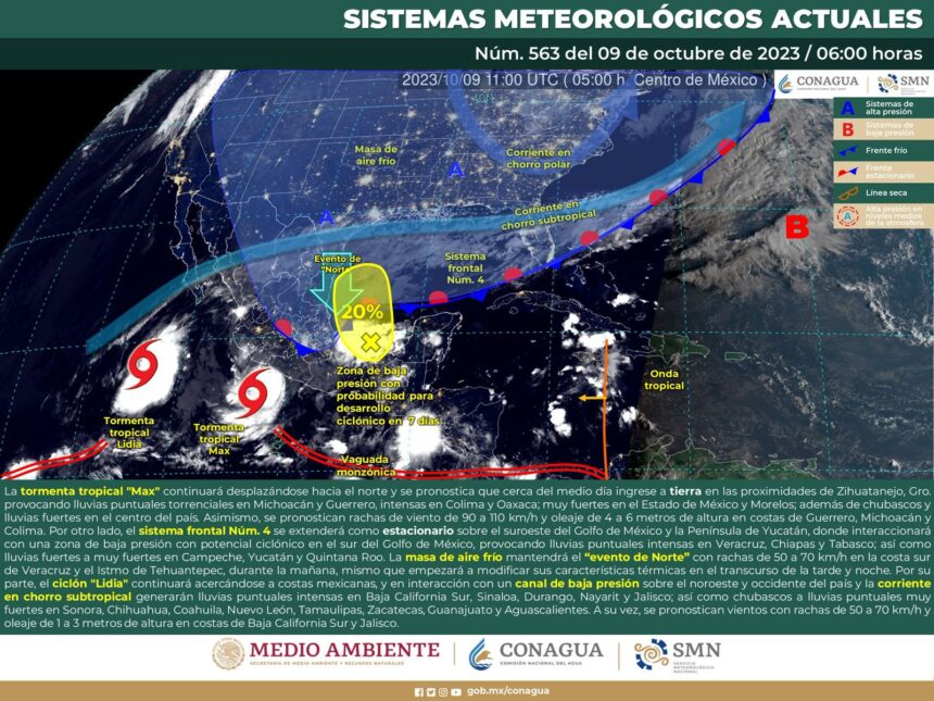 Debido con la información proporcionada por la Comisión Nacional del Agua (Conagua), esto será generado por la Tormenta Tropical Max que estará aproximándose sobre la costa occidental de Guerrero, y la madrugada de este día se localizó a 100 kilómetros al sur de Zihuatanejo.