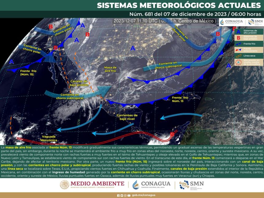 El próximo sistema invernal comenzará a tomar forma el día de hoy sobre el noroeste de la República Mexicana; se trata de un nuevo frente frío que traerá efectos directos con lluvias, vientos del norte y ambiente frío a partir del sábado y domingo sobre el estado de Oaxaca.
