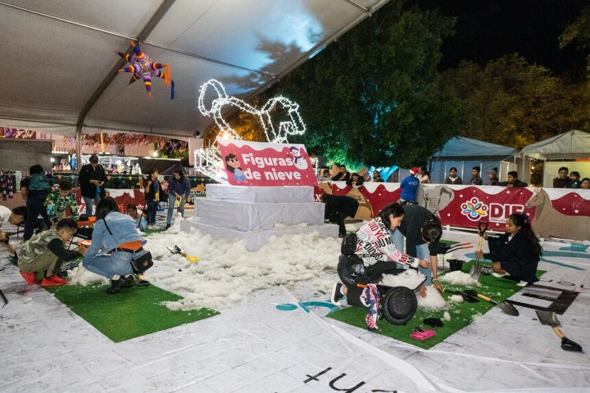 Oaxaca de Juárez, Oax. 12 de diciembre de 2023.- La alegría y diversión invaden el Pueblo Mágico Oaxaqueño instalado en el Paseo Juárez El Llano por parte del Sistema para el Desarrollo Integral de la Familia (DIF) Oaxaca, donde cientos de personas se congregan para disfrutar en familia y con amistades de un momento agradable en la pista de hielo, el tobogán, gotcha y en la elaboración de figuras de nieve.