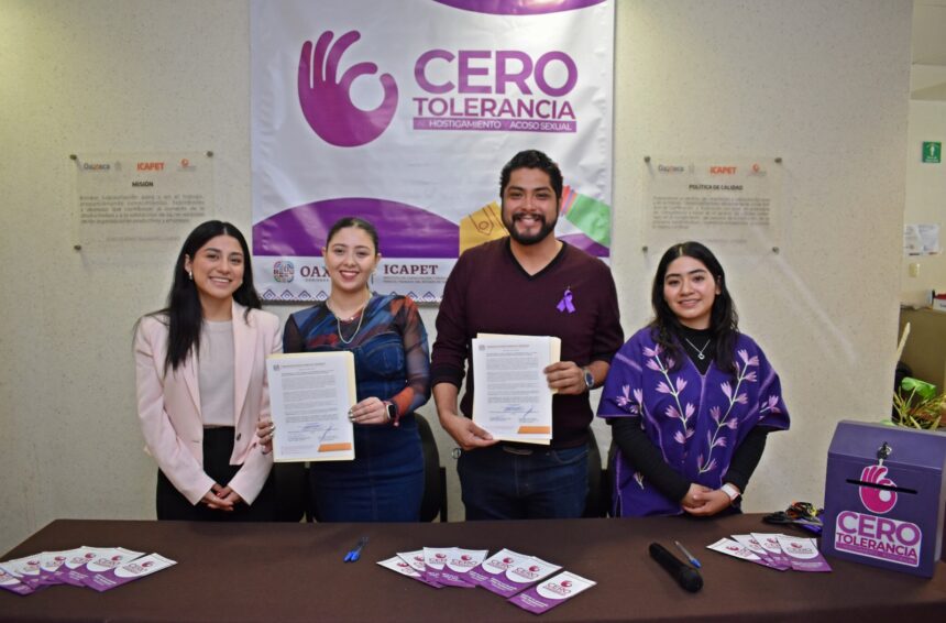 San Bartolo Coyotepec, Oax. 8 de diciembre de 2023.- Para garantizar una vida libre de violencia a las colaboradoras del Instituto de Capacitación y Productividad para el Trabajo del Estado de Oaxaca (Icapet) se implementó el Buzón Violeta, como parte de la Campaña Cero Tolerancia al Acoso y Hostigamiento Sexual de la Secretaría de Gobierno.