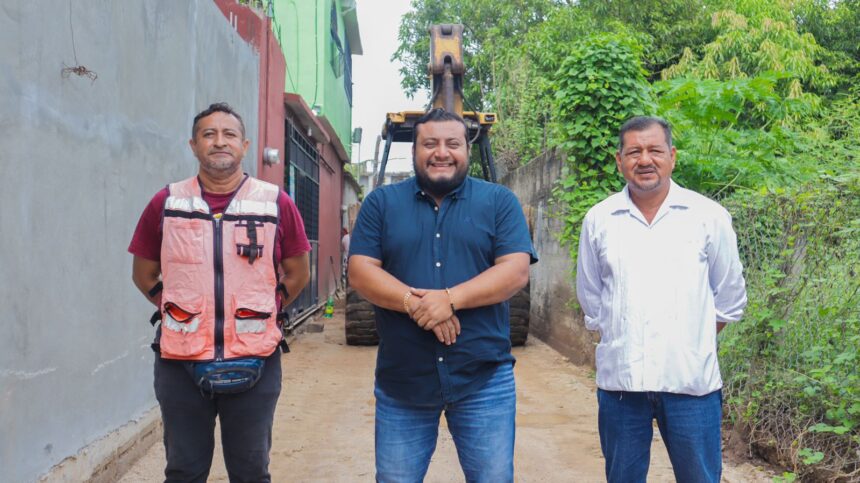 Juchitán, Oax.-El presidente Miguel Sánchez Altamirano supervisó este miércoles los avances de la pavimentación de 210 metros lineales del Callejón del Tepeyac, en la colonia Guadalupe Sur, Segunda sección, una importante obra que realiza el Ayuntamiento con recursos municipales.