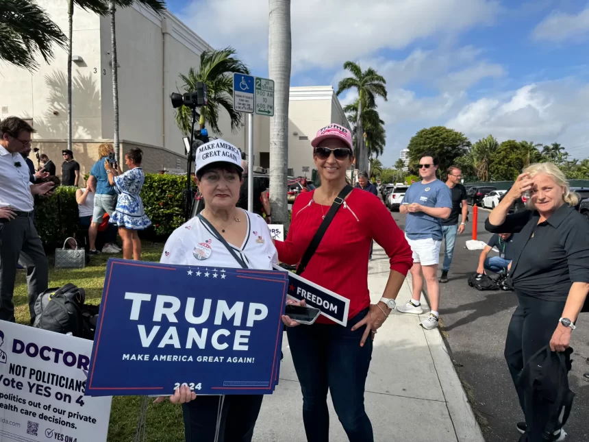 “Nos está yendo muy bien en Georgia (estado ‘bisagra’) y en todos los lugares”, dijo Trump ante los medios acompañado de la ex primera dama en el centro de votación de esta ciudad, donde se encuentra su lujoso complejo Mar-a-Lago.