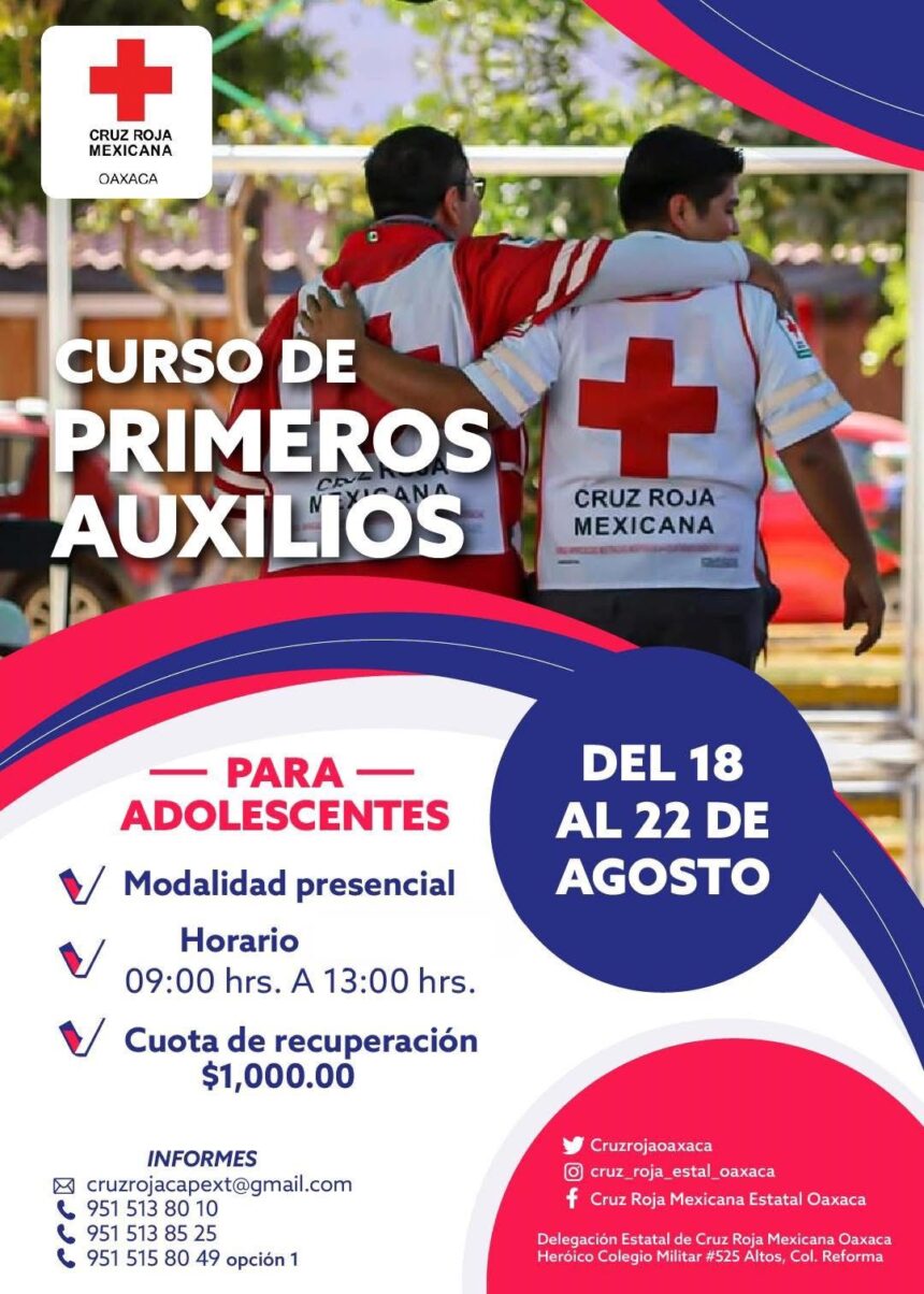 La Delegación Estatal de Cruz Roja Mexicana en Oaxaca lanzó la convocatoria para que adolescentes de 12 a 17 años participen en el curso presencial de primeros auxilios, una oportunidad para aprender técnicas básicas que pueden salvar vidas en situaciones de emergencia.