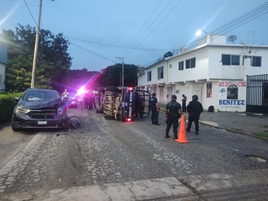 El accidente se registró cerca del fraccionamiento Guiguba, en donde la unidad de la Policía Estatal con número económico PE-2317, placas de circulación RU210B, comisionada al personal de la Secretaría de Marina, choco contra un vehículo marca Honda CRV, con placas de circulación TLS3041 del Estado de Oaxaca.