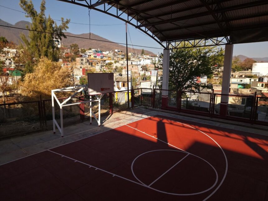 Oaxaca de Juárez, Oax. 28 de febrero de 2026.- El Gobernador Salomón Jara Cruz entregó el techado de la cancha de usos múltiples de la colonia Miguel Ávila Camacho, agencia de Donají, en la capital del estado; como parte de la estrategia Oaxaca Segura que promueve actividades deportivas y culturales en estos espacios.