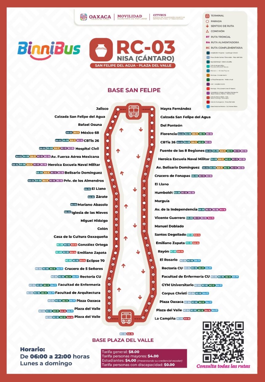 El BinniBus puso en operación la ruta RC03 “Nisa”, cántaro en lengua originaria mazateca de Huautla de Jiménez, la cual conecta a San Felipe del Agua con Plaza del Valle.