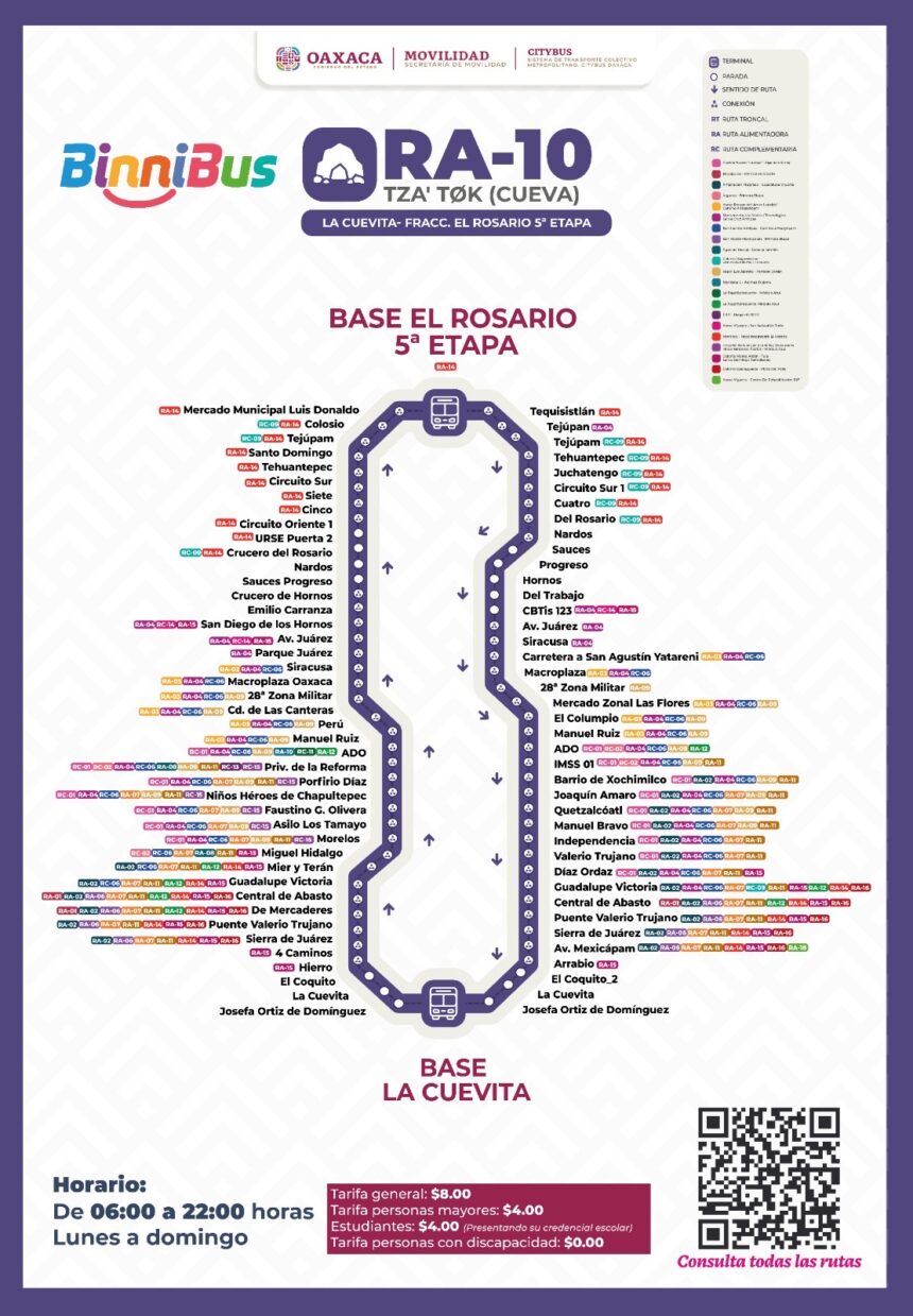 Como parte del compromiso del Gobierno del Estado por consolidar un sistema de transporte público más eficiente, seguro e incluyente, a través del Sistema de Transporte Colectivo Metropolitano BinniBus, se pone en marcha la *nueva ruta RA10 “Tza’ Tøk”,* que en lengua zoque significa cueva.