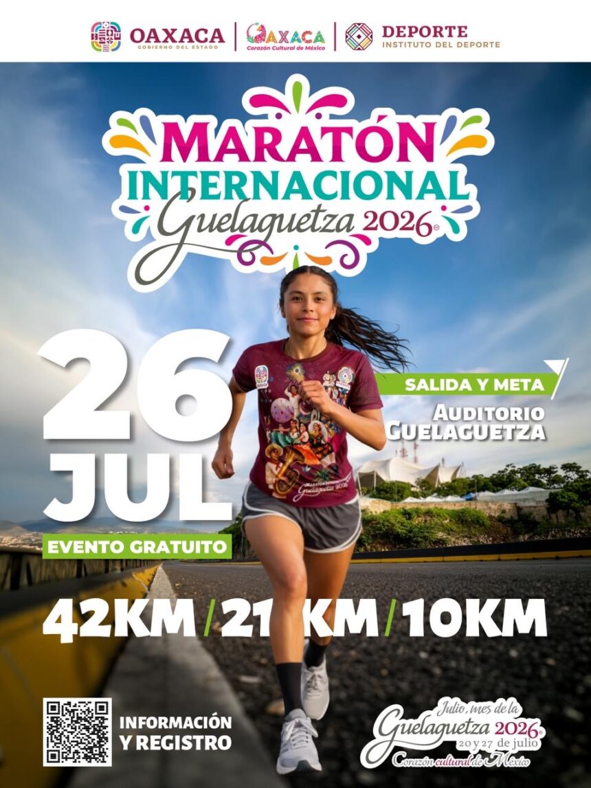 El Instituto del Deporte del Estado de Oaxaca (Indeporte) te invita a vivir el Maratón Internacional Guelaguetza 2026, una de las grandes fiestas deportivas que reúne a miles de corredoras y corredores en una experiencia única, donde además podrás obtener playera conmemorativa y medalla de finalista.