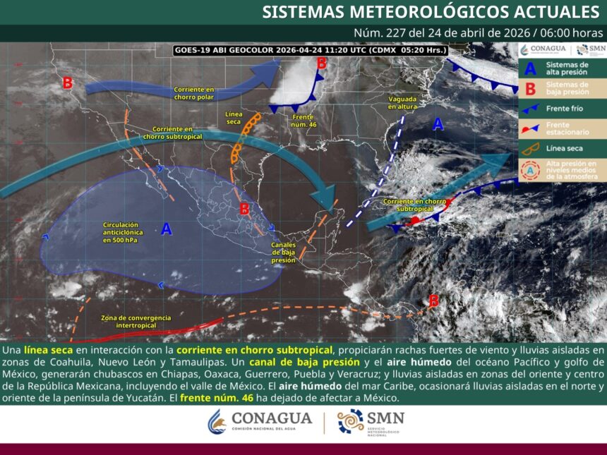 Oaxaca de Juárez, Oax. 24 de abril de 2026.- La Coordinación Estatal de Protección Civil y Gestión de Riesgos (CEPCyGR) informa que se mantendrá el mismo patrón atmosférico de los últimos días, generando durante la tarde y noche de este viernes fuerte convección atmosférica, con lluvias ligeras, aguaceros, tormentas eléctricas y rachas de viento en diferentes regiones de Oaxaca.