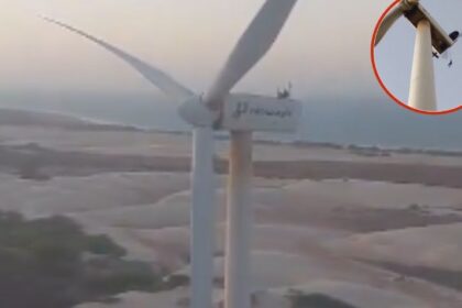 Captan rescate de trabajadores atrapados en torre eólica a 60 metros de altura