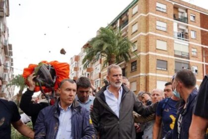 Víctimas de inundaciones por DANA en Valencia reciben con palos y lodo al presidente y al Rey de España
