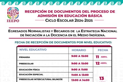 Realizará IEEPO 11, 12 y 13 de abril recepción de documentos del proceso de admisión en Educación Básica