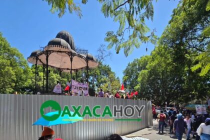 Organizaciones sociales y Sección 22 quitan láminas del kiosco.